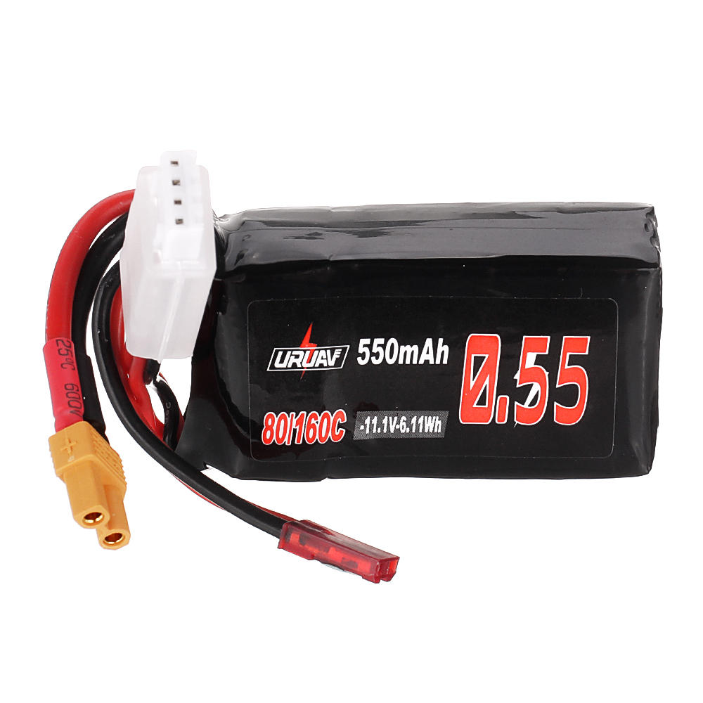 URUAV 11.1V 550mAh 80/160C 3S Lipo Battery JST XT30 Plug for Eachine Lizard95