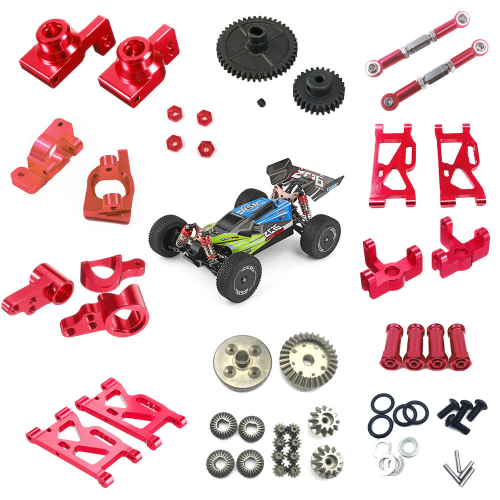 Wltoys 144001 1/14 Upgrade Metal RC Car Parts Swing Arm C Seat Connector Steering Cup Rear Wheel Seat Rod Gear Red