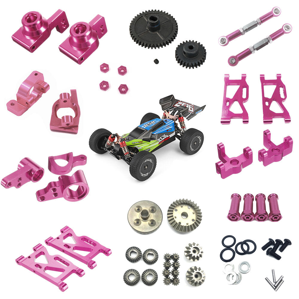 Wltoys 144001 1/14 Upgrade Metal RC Car Parts Swing Arm C Seat Connector Steering Cup Rear Wheel Seat Rod Gear Pink
