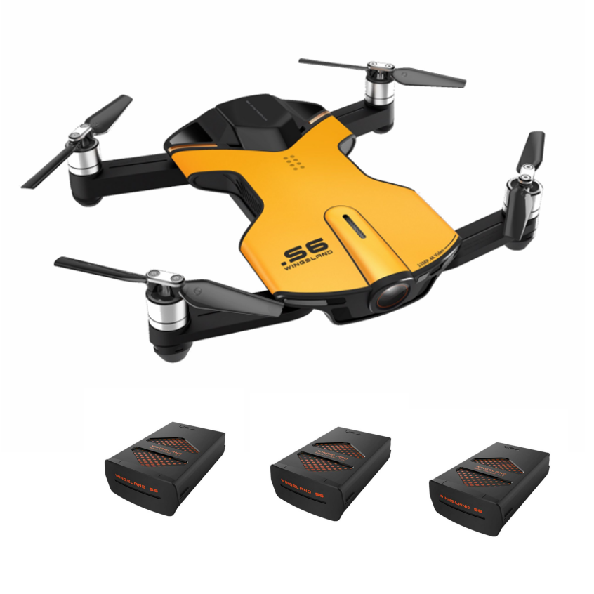 Wingsland S6 WiFi FPV With 4K UHD Camera Comprehensive Obstacle Avoidance Pocket Selfie Yellow RC Drone Quadcopter with Three Batteries