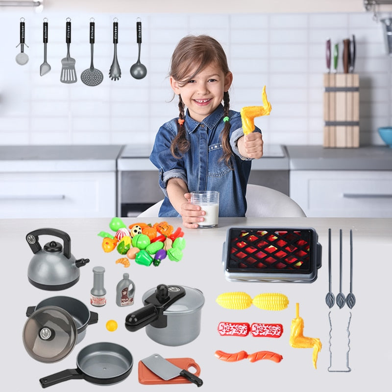 44PCS Mini Kids Kitchen Toys Cookware Pot Pan Kids Pretend Play Toy Cook Simulation Kitchen Utensils Toys For Children