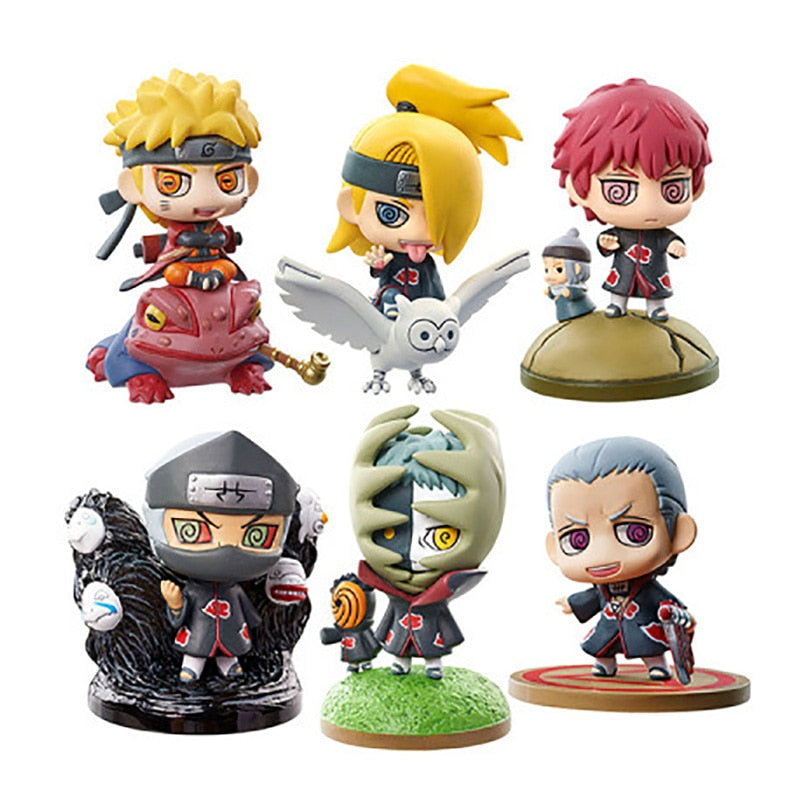 6Pcs Q Version Naruto Anime Figurine Uchiha Sasuke Itachi Gaara Akatsuki Action Figure PVC Model Toys For Children