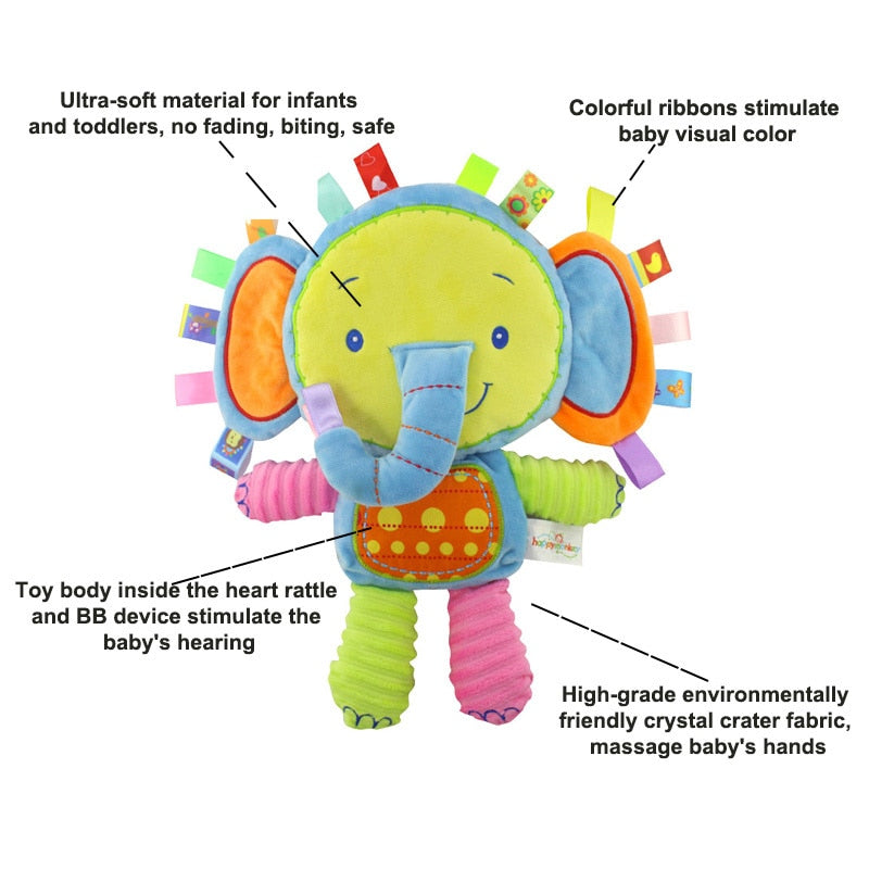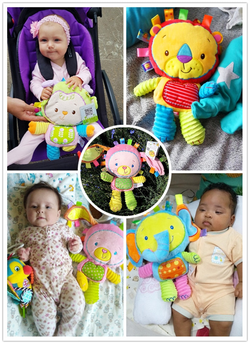 Cartoon Baby Plush Rattles Toys Appease Doll Infant Hand Bells Elephant/Monkey/Rabbit Animal Soft Cotton Infant Educational Toys