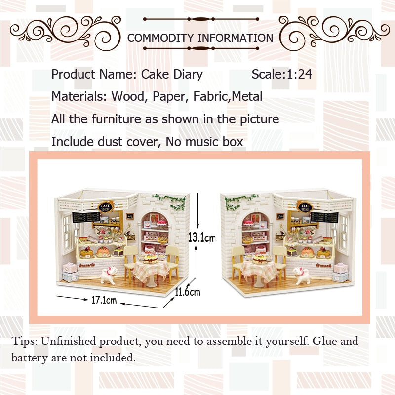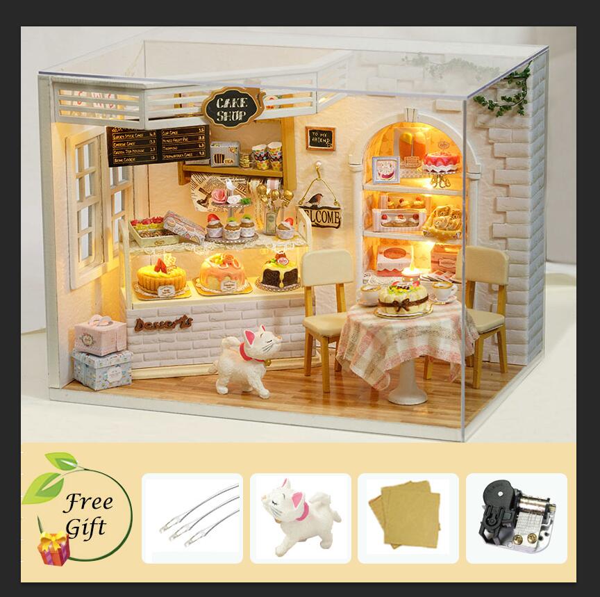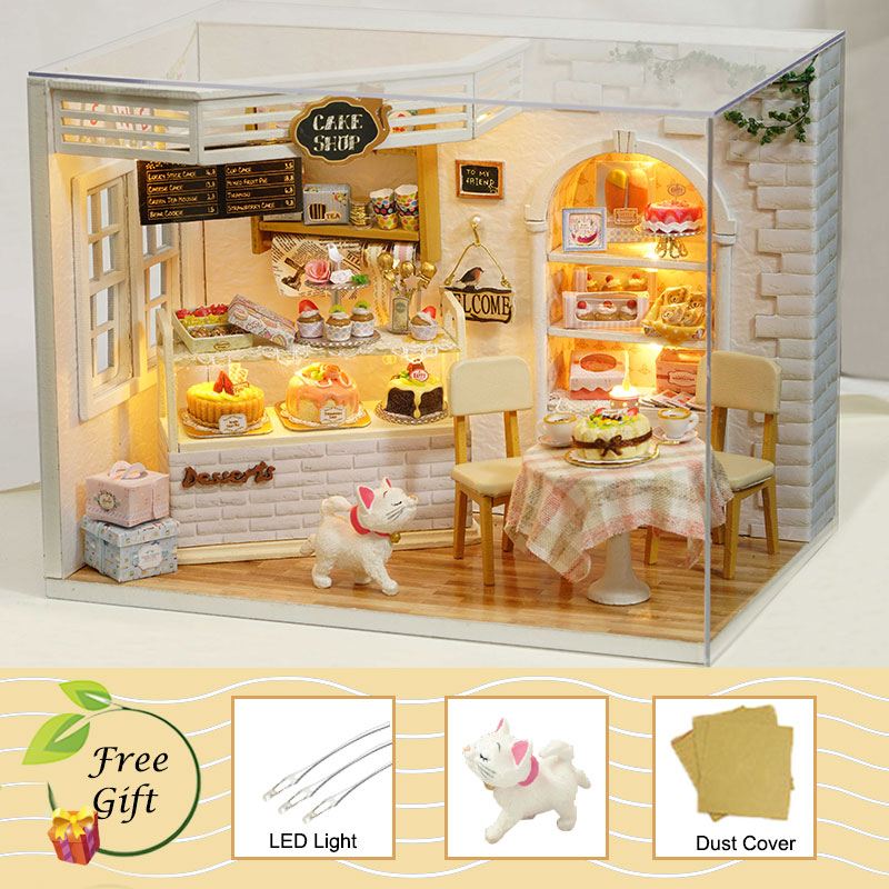 Doll House Furniture Diy Miniature Dust Cover 3D Wooden Miniaturas Dollhouse Toys for Children Birthday Gifts Cake Diary H14