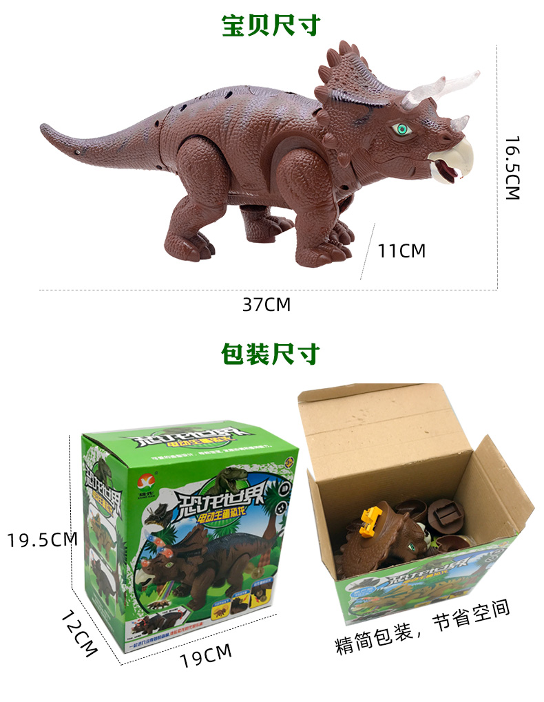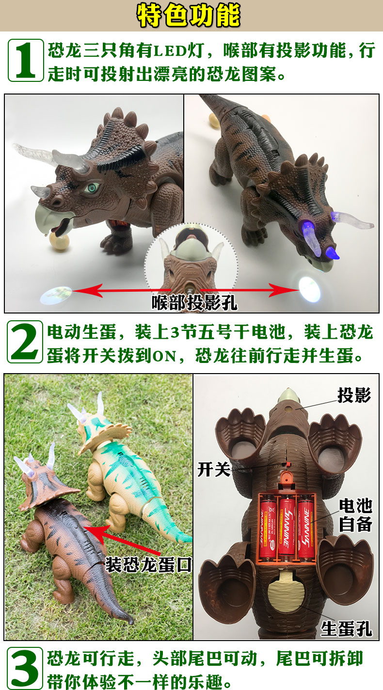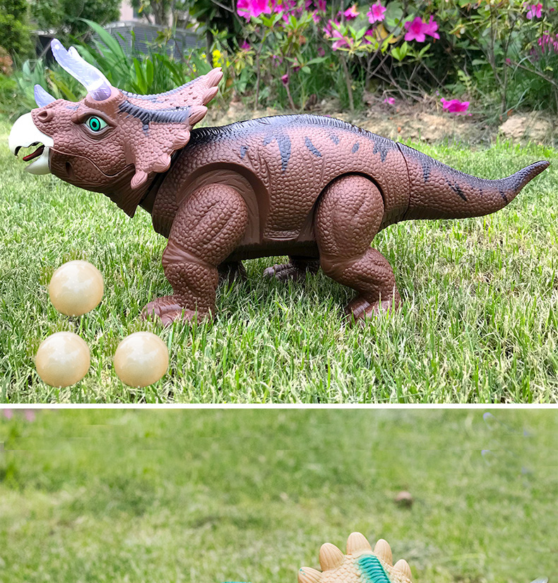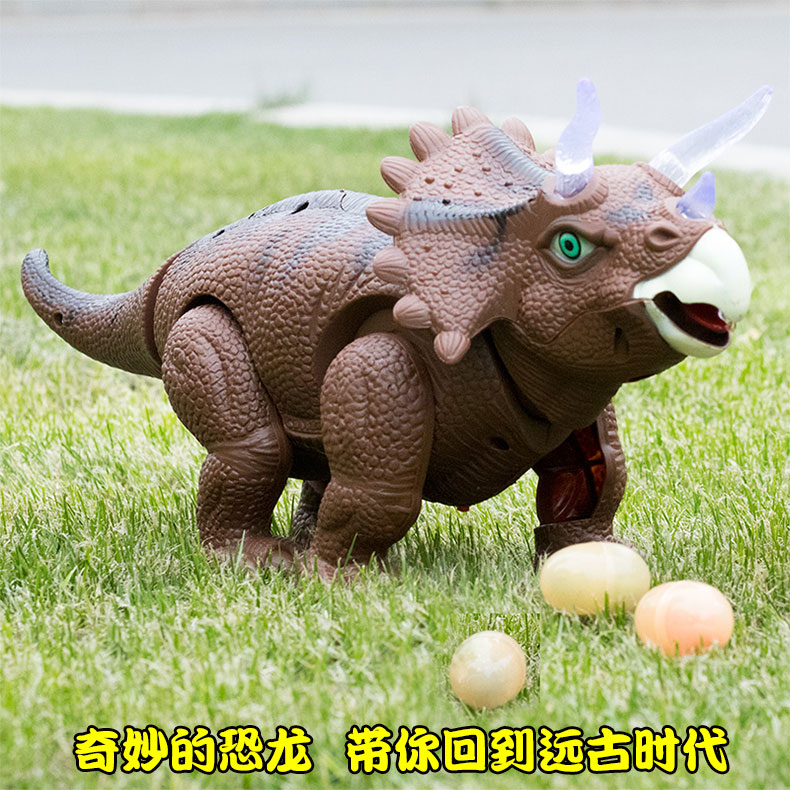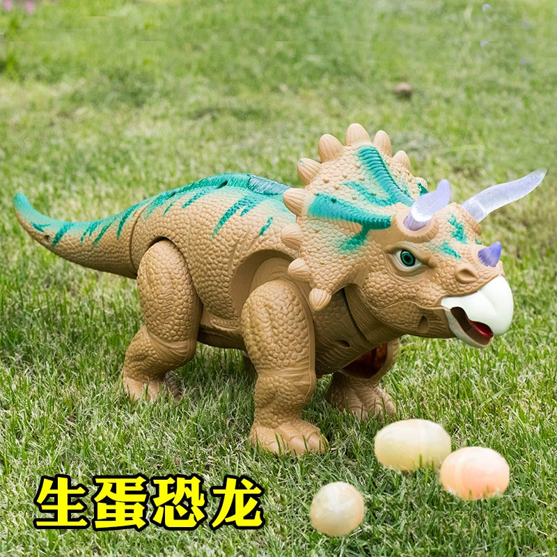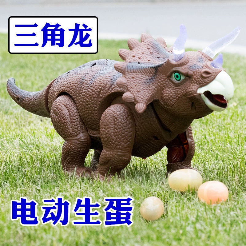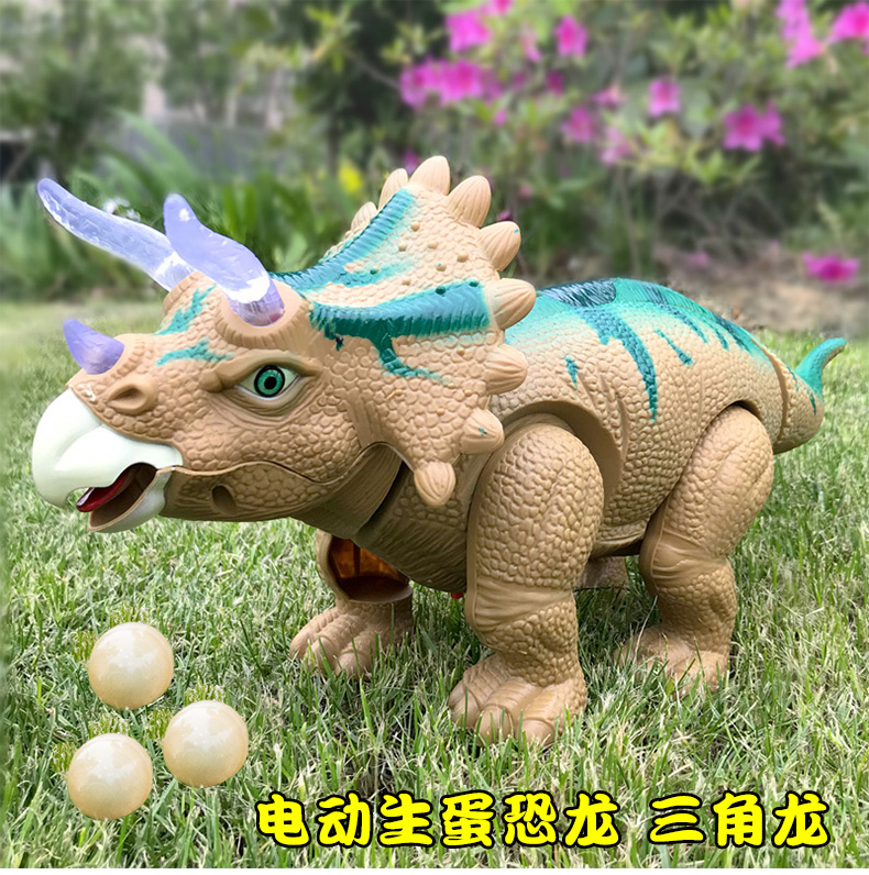 Electric Egg Dinosaur Toy Children's Triceratops Double-Headed Dragon Model Will Drop Eggs Simulation Animal Doll Light