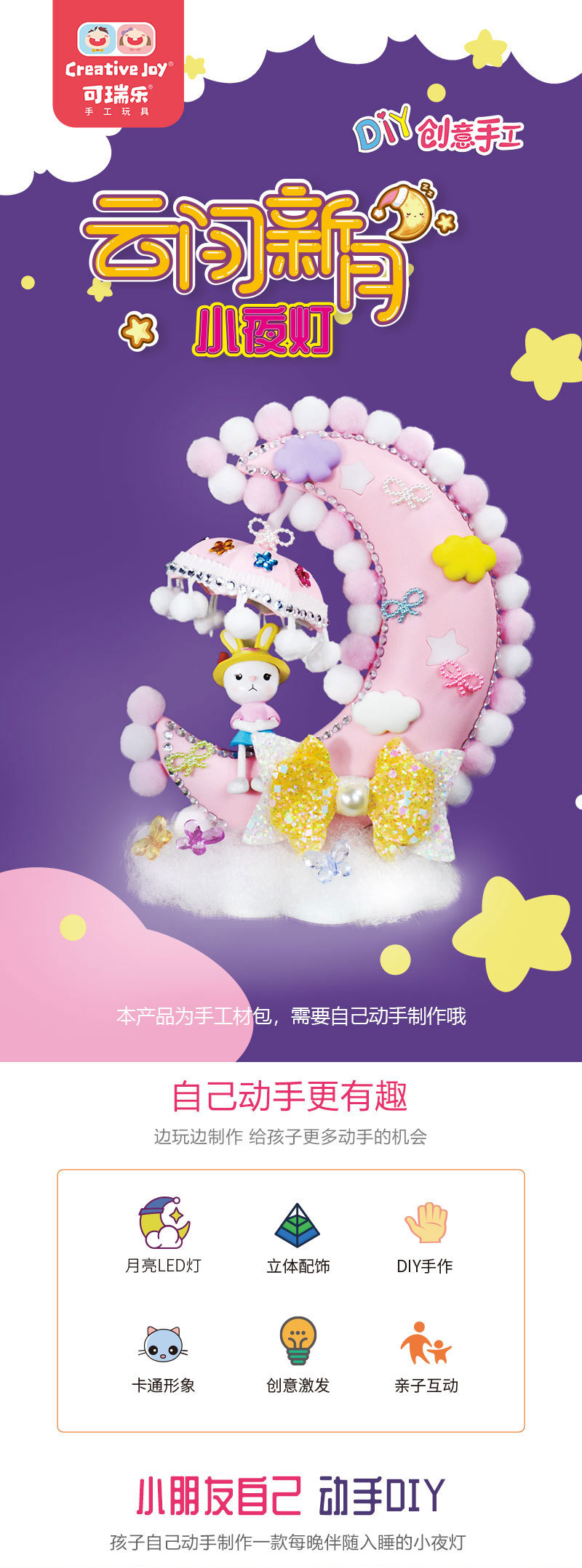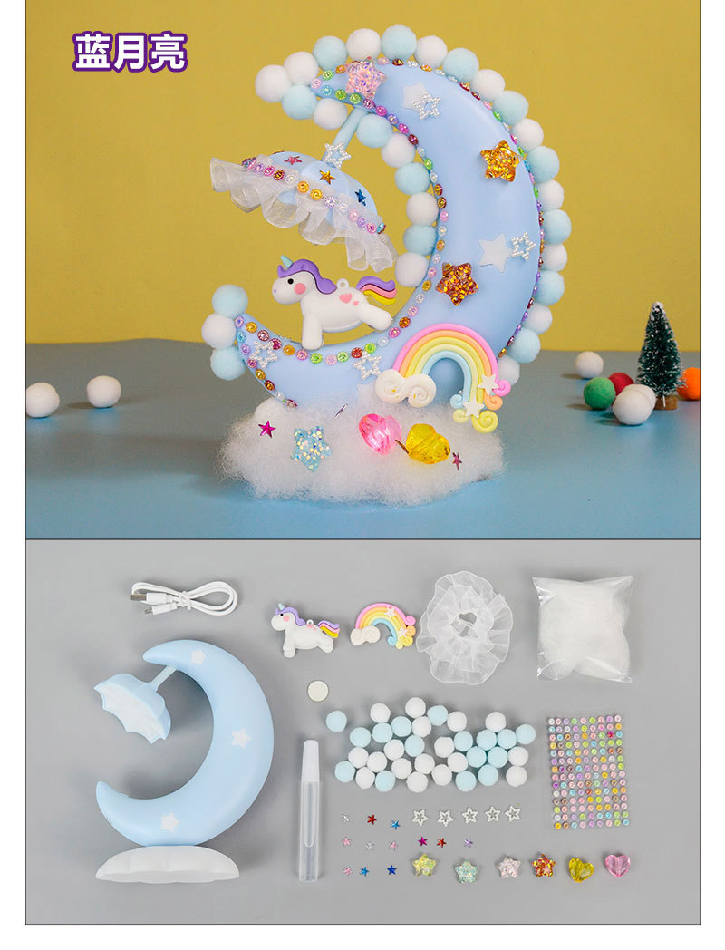 KEERAYLA Children's DIY Cloud New Moon Small Night Lamp Handmade Material Kit Educational Toys Gift Set
