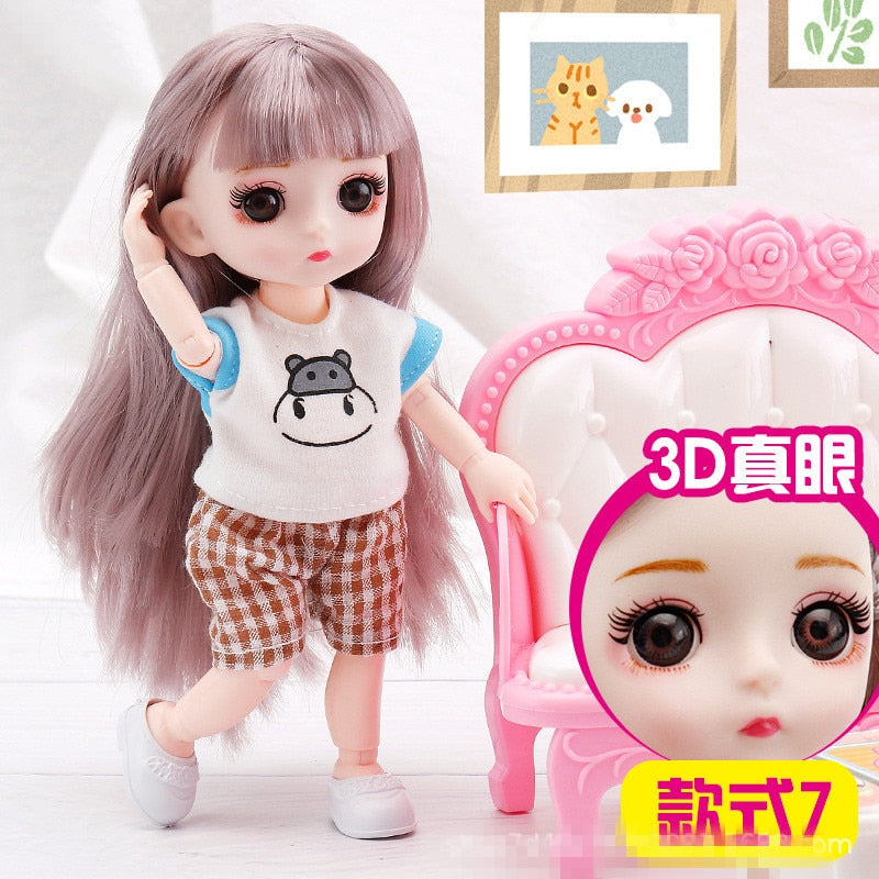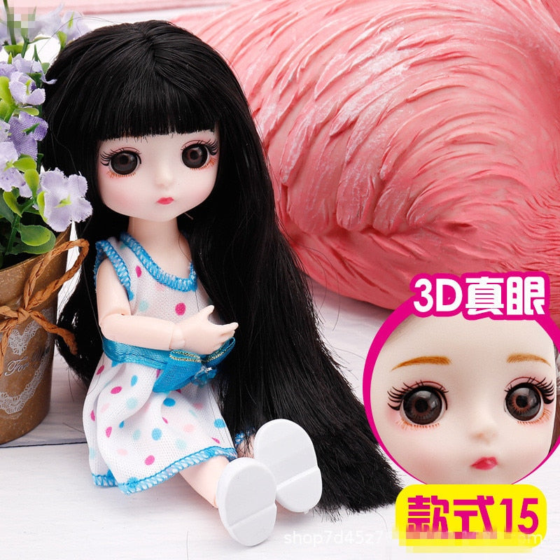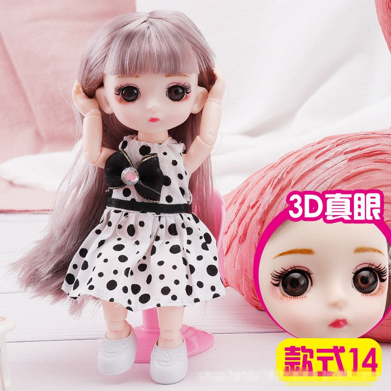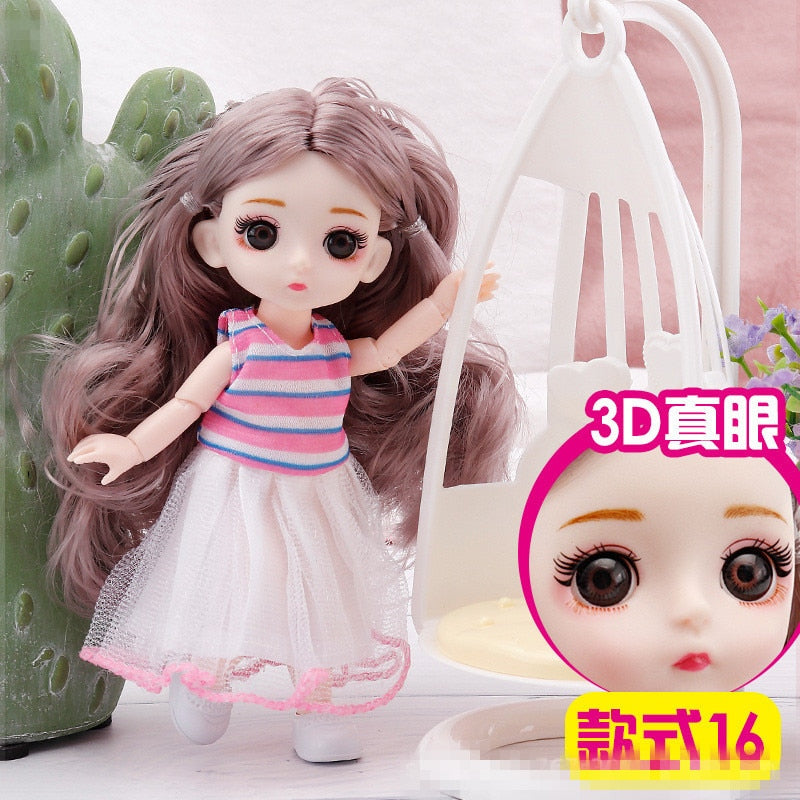 New 16 cm BJD Mini Doll 13 Movable Joint Girl Baby 3D Big Eyes Beautiful DIY Toy Doll With Clothes Dress Up 1/12 Fashion Doll