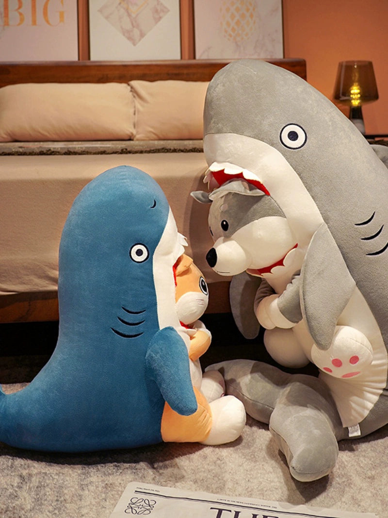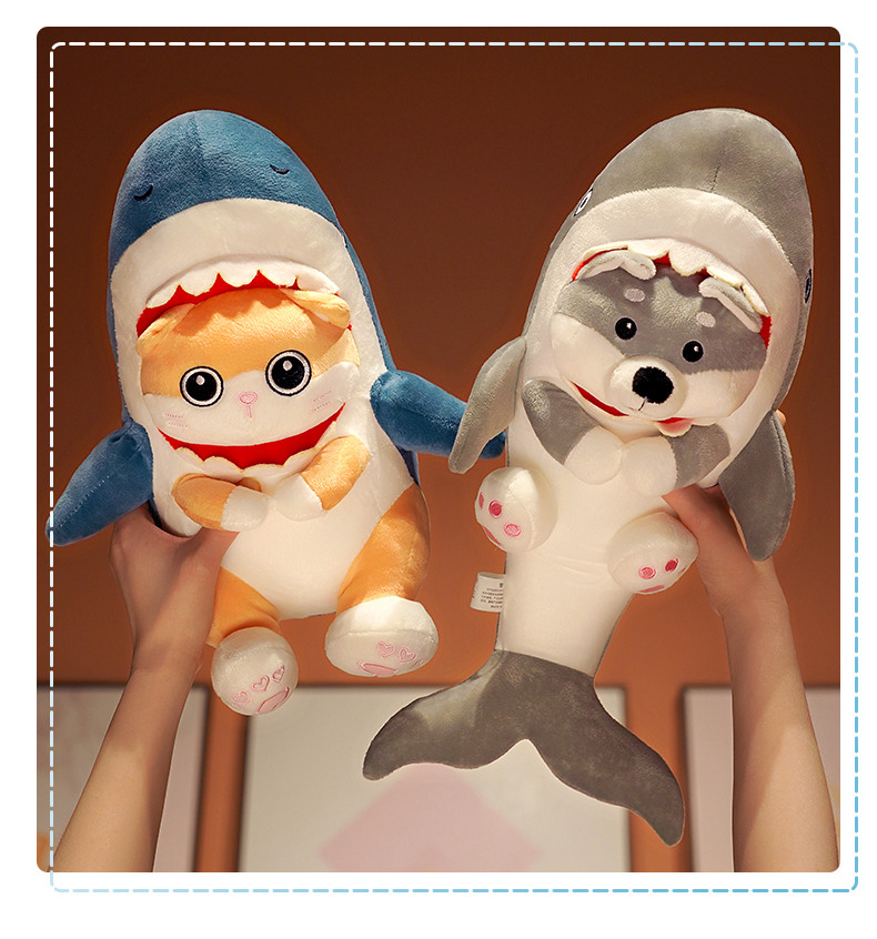 Shark Dog Doll Funny Stuffed Toy Sand Carving Birthday Gift Funny Shark Dog Ragdoll Pillow Girls' Bed