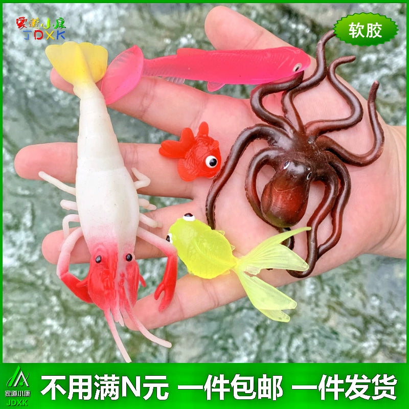 Soft Rubber Simulation Small Goldfish River Shrimp Octopus Crab Turtle Kindergarten Children's Toy Static Marine Animal Model