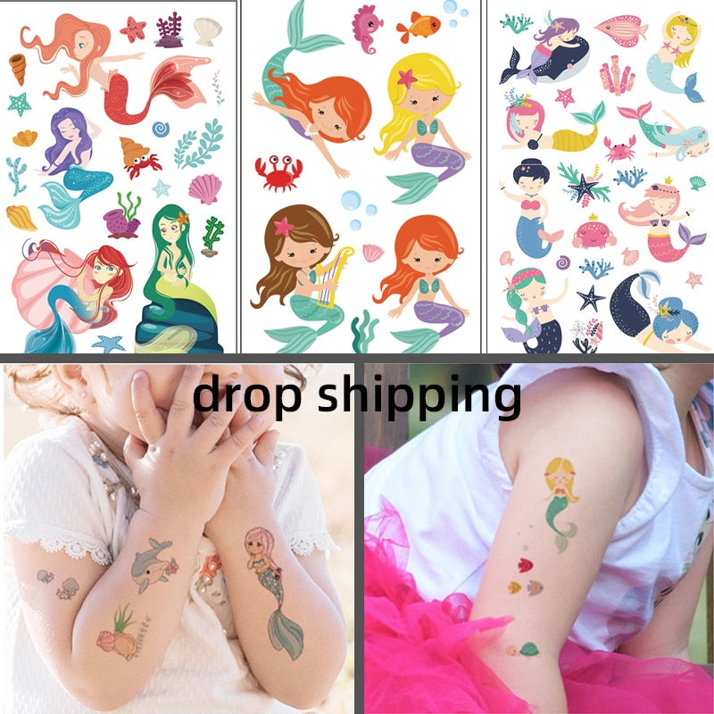 Stickers children cartoon fantasy, party princess theme stickers, mermaid tattoo stickers, Halloween adult stickers