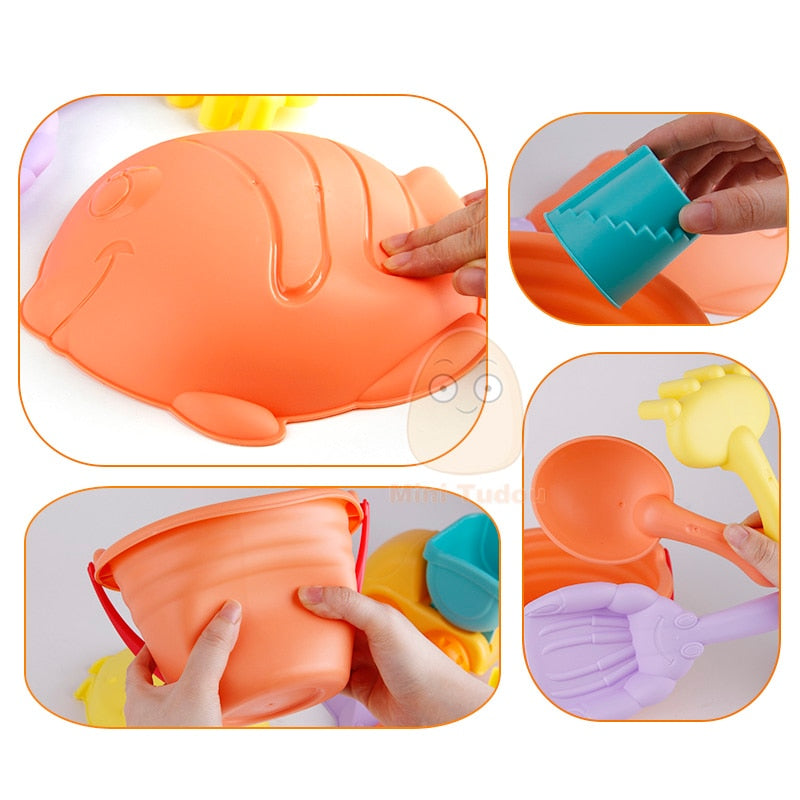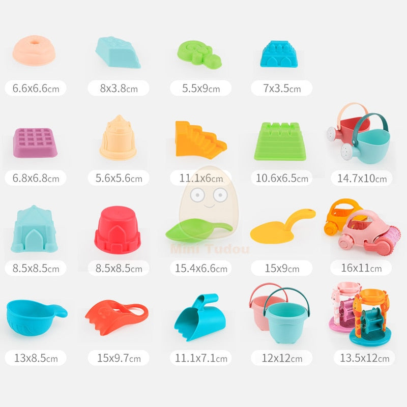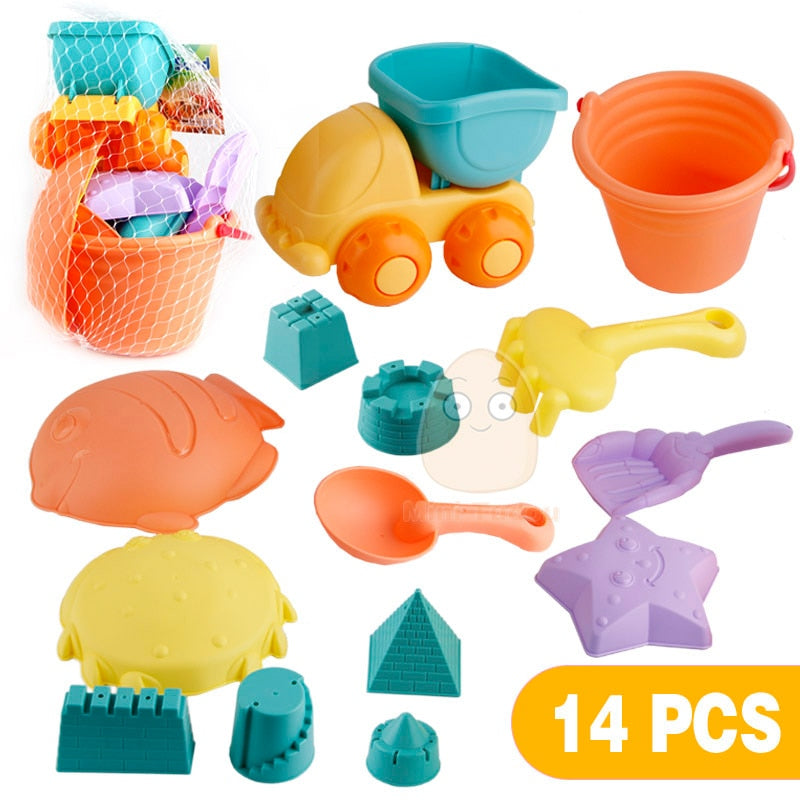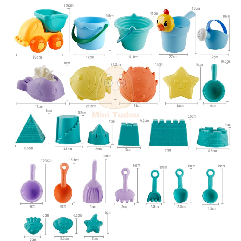 Summer Silicone Soft Baby Beach Toys Kids Mesh Bag Bath Play Set Beach Party Cart Ducks Bucket Sand Molds Tool Water Game
