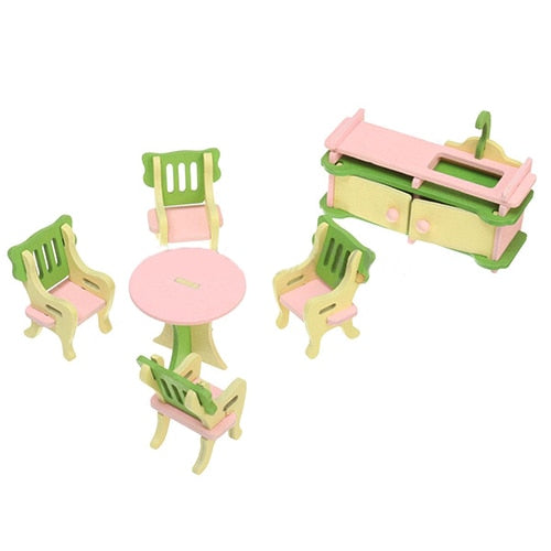 Wooden Miniature Doll House Furniture Room Set Toy Xmas Gift for Child Kids